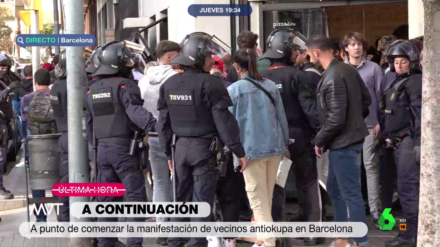 A su vez, algunos vecinos han dirigido insultos a los okupas desde las ventanas de sus casas, a lo que los manifestantes anticapitalistas han respondido con consignas como "gente sin casa y casas sin gente" o "dónde está Desokupa". Las dos manifestaciones contrarias confluían este jueves en Barcelona tras los tensos enfrentamientos de las últimas semanas entre okupas y antiokupas en la Ciudad Condal.