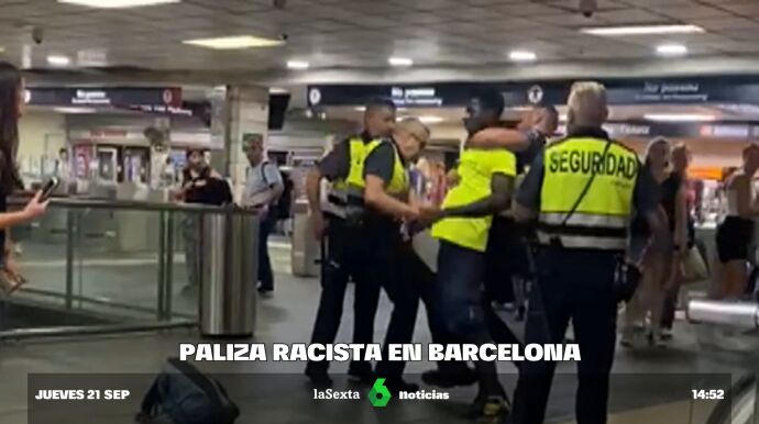 Ocurrió este miércoles a las 18:00 horas en la estación de tren de Plaza Cataluña. Cuatro vigilantes de seguridad emprendieron a golpes a un chico negro. Algunos ciudadanos les pidieron que parasen y se encararon con ellos. Pero los seguridades siguieron bloqueando al hombre. Uno de ellos le agarró del cuello. Otro le pegó una patada. José Manuel fue testigo de todo ello. Intentó frenar esta desproporcionada actuación en la que un vigilante intentó golpear con la porra los genitales del joven.