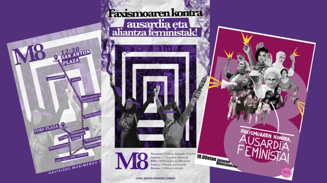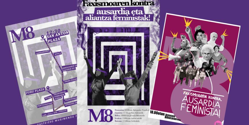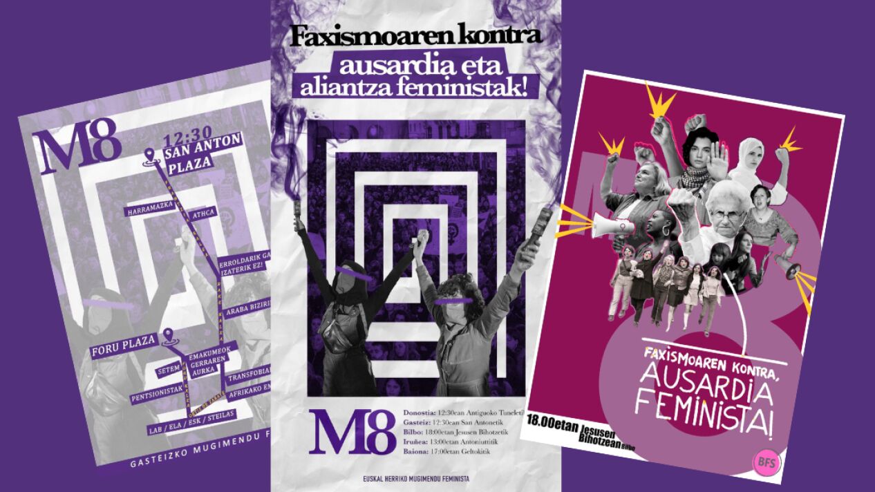 A la misma hora, también a las 12:30h, saldrá la manifestación del 8M de Donosti, organizada por el Movimiento Feminista de Euskal Herria. Bajo el lema 'Faxismoaren kontra ausardia eta aliantza feministak ('Contra el fascismo, valentía y alianzas feministas'). Concretamente, la marcha arranca en 2025 desde el Túnel de Antiguo, en una convocatoria centrada en luchar contra el "ascenso de la extrema derecha, el fascismo y actitudes reaccionarias en diversos campos y sectores".