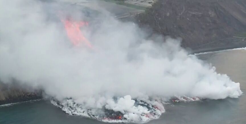 El 112 canario incide en que ahora que "la lava ya ha llegado al mar" todo aquel que esté cerca debería, "si se encuentra en el exterior", buscar "un lugar seguro" donde refugiarse.