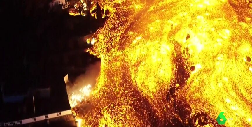 El cabo Andrés Ruiz es uno de los cinco pilotos de drones de la UME destinados en La Palma. En el vídeo explica que realiza varios vuelos diarios en los que controla cómo avanzan las coladas. Las imágenes son tan precisas que permiten saber incluso la temperatura, la velocidad y la altura de la lava.