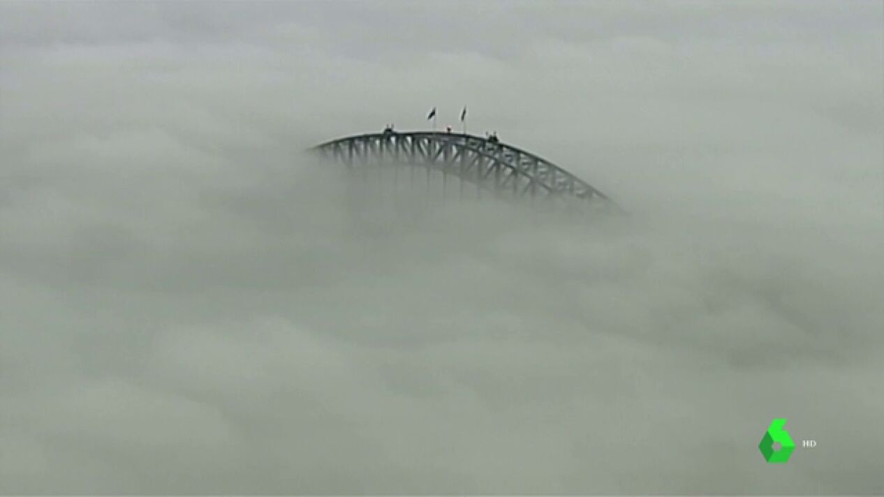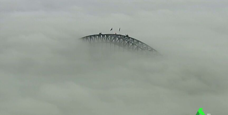 Las imágenes, tomadas desde el icónico puente de la bahía de Sídneysolo mostraban niebla que había engullido casi por completo la ciudad portuaria de Australia.