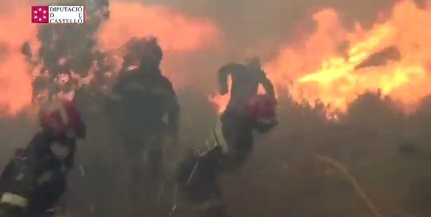 Las imágenes que muestra el vídeo principal de esta noticia son sobrecogedoras. Reflejan a la perfección el complicado trabajo que estos días desarrollan los bomberos en el incendio de Bejís, en Castellón, donde ni la orografía del terreno ni las condiciones meteorológicas (con escasa humedad) han sido de ayuda.