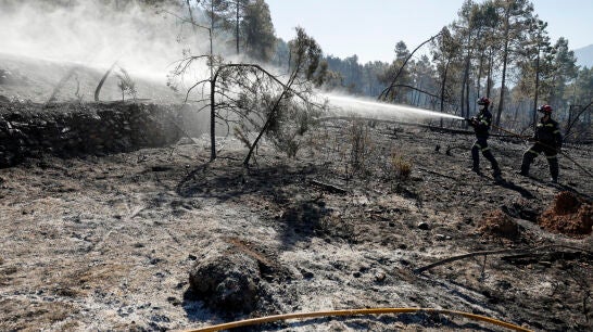 Las condiciones meteorológicas han sido favorables durante la noche y el incendio que desde hace una semana afecta al interior de Castellón no ha registrado incidencias significativas, aunque la previsión para este jueves es de "alto riesgo", ya que se esperan vientos fuertes de poniente y una humedad inferior al 20%.