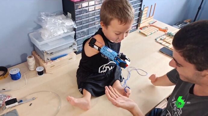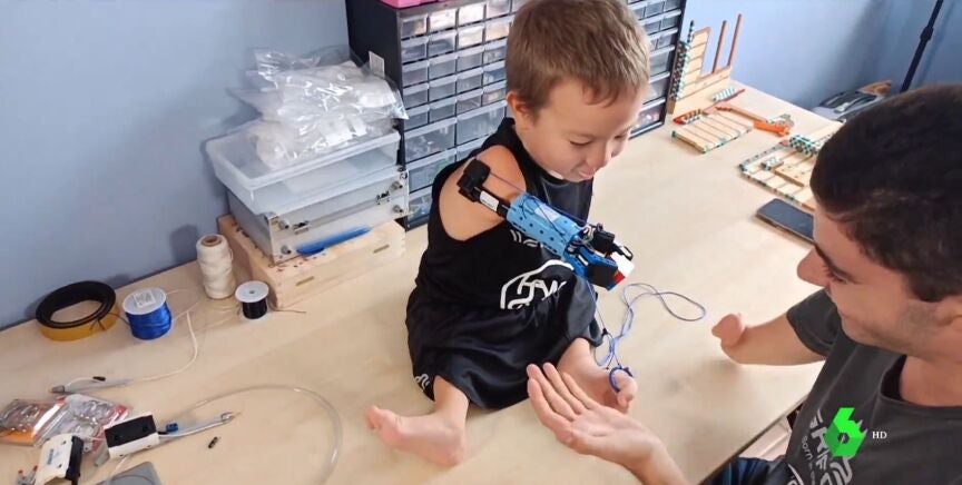 David Aguilar se había fabricado una prótesis con piezas de Lego y ahora le ha cambiado la vida a Beknur al hacer lo mismo por él: el pequeño ya cuenta con su propio brazo articulado, que maneja a la perfección.