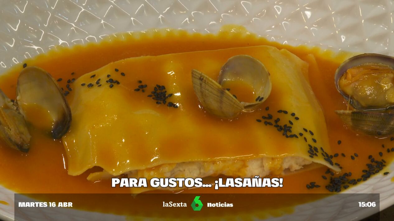 Si hablamos de lasaña, podemos pensar en la típica receta boloñesa pero, en realidad, hay tantas como gustos. Por ejemplo, las hay con sabor a mar, como la de David Tova, chef del restaurante Montes de Galicia, en Madrid. Entre placa y placa de pasta, este chef pone merluza y gambas. La salsa, a base de nata, lleva también cebolla, una pizquita de sal, pimienta blanca y nuez moscada.