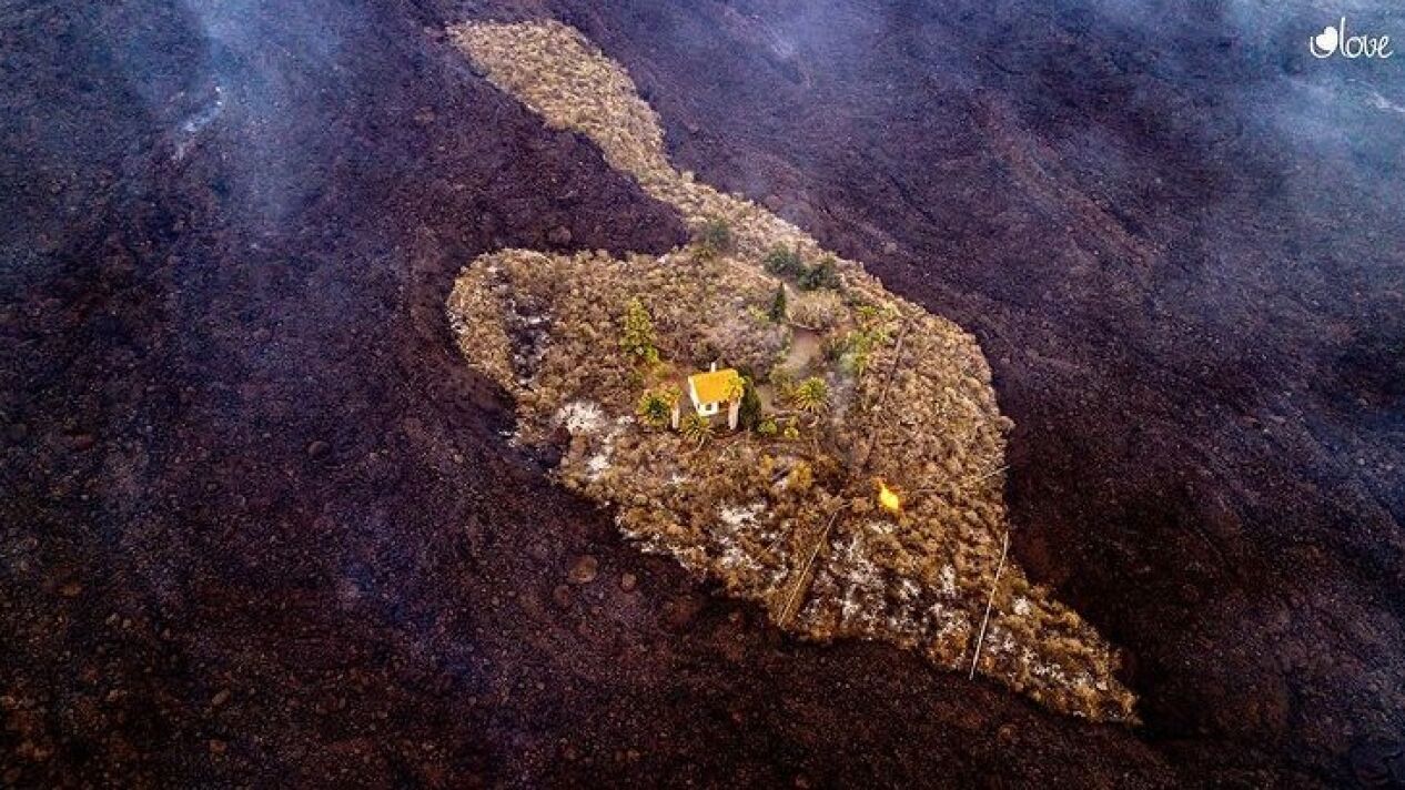 La lava del volcán rodea una casa en La Palma y deja una imagen inédita