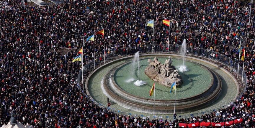 Cibeles ha sido el epicentro de una nueva movilización en defensa de la Sanidad pública. Desde Málaga, Pedro Sánchez ha reivindicado una Sanidad "pública, digna, de calidad, gratuita y universal" frente al "modelo del PP de que se cure quien pueda".