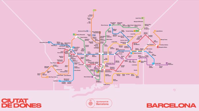 "¿Cómo sería vivir en una ciudad llena de nombres de mujeres? Escritoras, políticas, activistas, emprendedoras... ejemplos de todo lo que una niña puede llegar a ser. Próxima parada: Ciudad de Mujeres". Con este mensaje el Ayuntamiento de Barcelona ha dado a conocer una de sus últimas iniciativas, Ciutat de Dones, la reconversión del mapa del Metro de Barcelona a base de los nombres de 153 mujeres que han sido y son referentes de la Ciudad Condal.