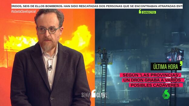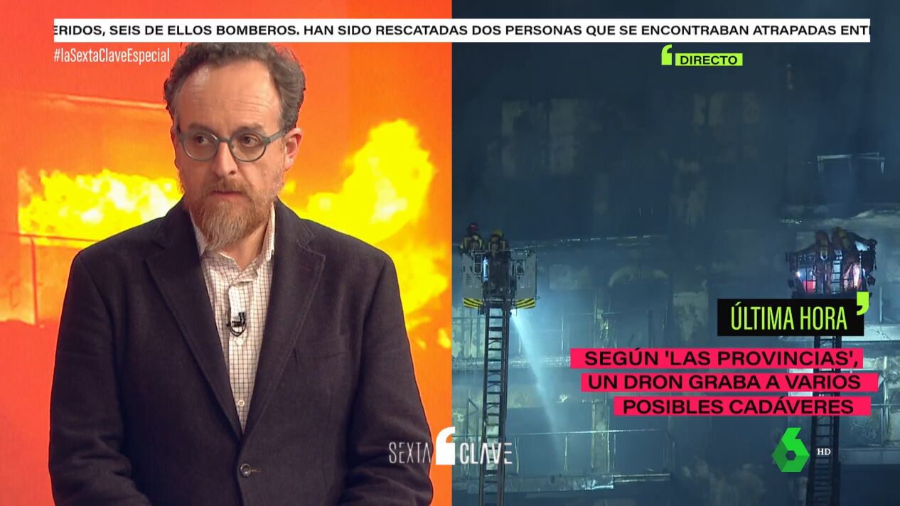 El material de construcción empleado, la normativa vigente, así como la dirección de las llamas. El experto responde a todas estas cuestiones en el especial de laSexta Clave tras el incendio que se ha desatado este jueves en Valencia.