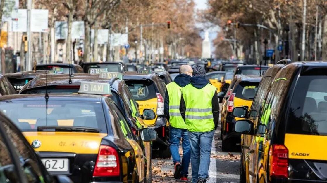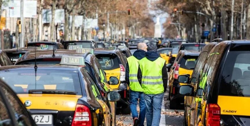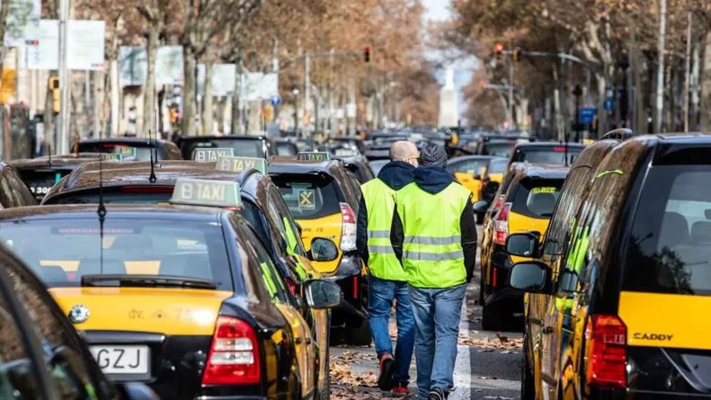 Los taxis cortan la Gran Vía en Barcelona en una jornada de huelga de médicos y profesores en Cataluña
