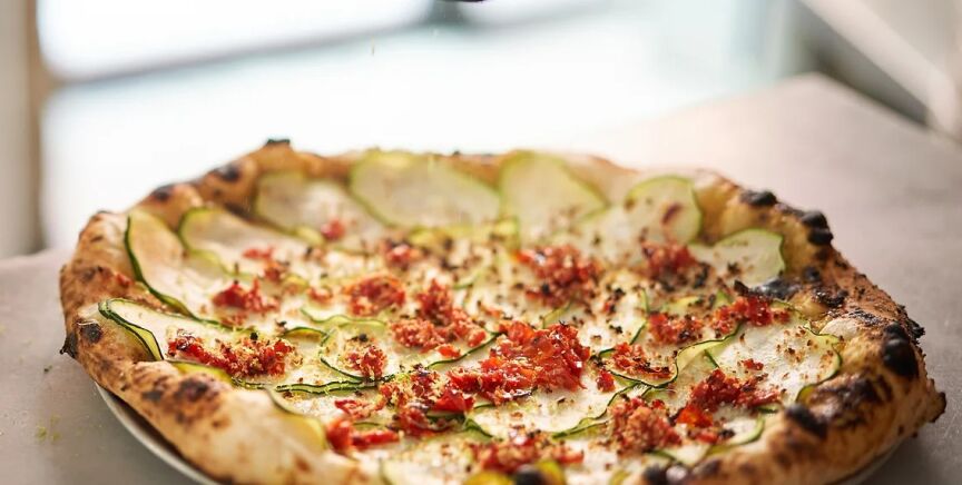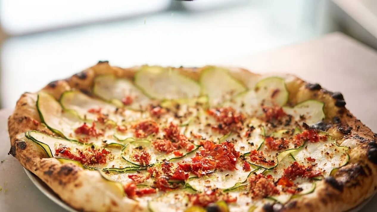 La pizza vegana con crema de pistacho, calabacín, tomate confitado, panko y ralladura de lima de Hot Now (Madrid) ha sido elegida como la mejor de España en una final en la que han competido ocho 'pizzaioli' seleccionados por el jurado entre las 19 propuestas presentadas.