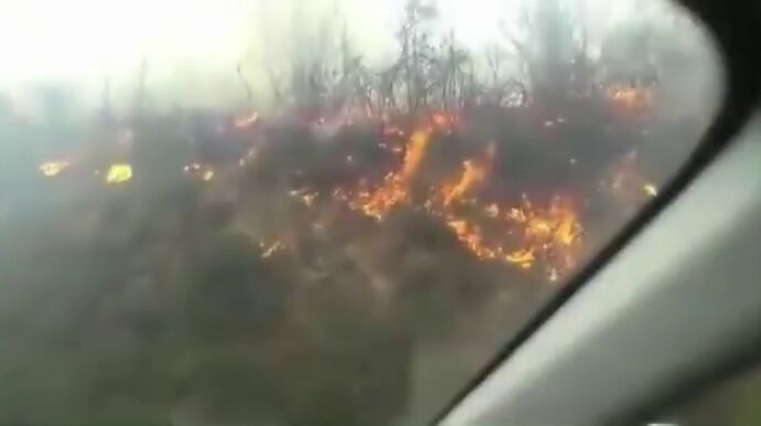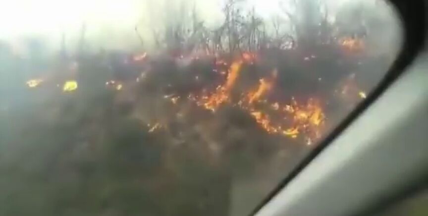 Lo puedes ver en este vídeo en el que uno de ellos conduce el coche y otro, David P. Sánchez, graba el peligroso momento mientras escapan entre una humareda que deja poca visiblidad.