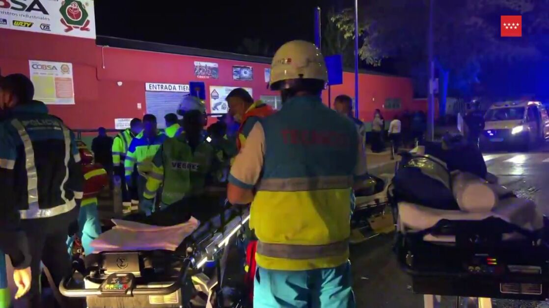 Además, los servicios sanitarios de SUMA 112, Cruz Roja, ambulancia municipal y protecciones civiles de la zona han trasladado a cuatro personas heridas graves. Dos hombres de mediana edad han sido trasladados al Hospital de Coslada y al Gregorio Marañón con fracturas en la pierna y en la pelvis, respectivamente. Y dos mujeres con un traumatismo craneo-encefálico han sido trasladadas a los hopsitales de Torrejón y La Princesa. Otros dos heridos considerados como potencialmente graves han sido trasladados al Hospital de Torrejón con una fractura de tobillo, mientras que uno de ellos también presentaba un TCE leve.