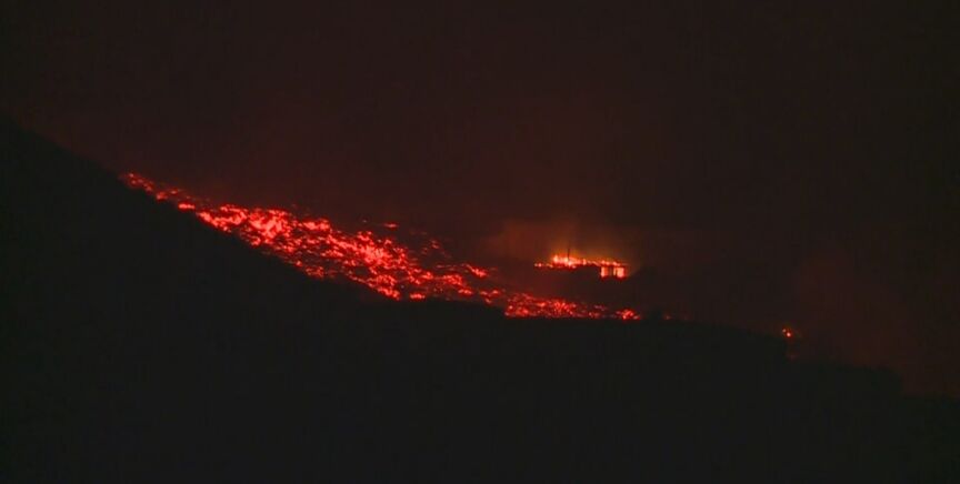 La lava cae al mar tras superar todos los obstáculos de la Cumbre Vieja
