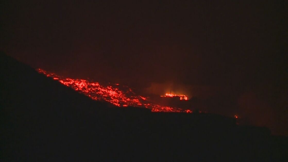Tras diez días expulsando lava, el volcán de La Palma ha conseguido formar una enorme lengua incandescente que ya se desliza sobre la Playa Nueva de la isla.