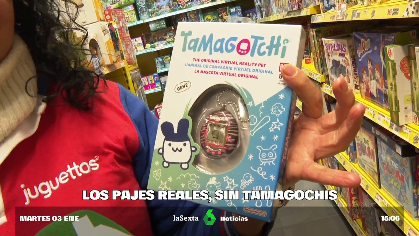 Esperanza Mesa, de juguetes Osorno, señala que Bebé Reborn es uno de los grandes éxitos. "Un bebé real que pesa dos kilos y medio", describe. También han volado los clásicos Sony o Súper Mario y el bolso que cierra y abre los ojos. "Un bolso que es de unicornio y cierra y abre los ojos", detalla una pequeña. Pero sin duda alguna, la joya de la corona son los Tamagochis, tanto los viejos como los nuevos. "Los dos se han agotado", añade una dependienta de una tienda de juguetes.
