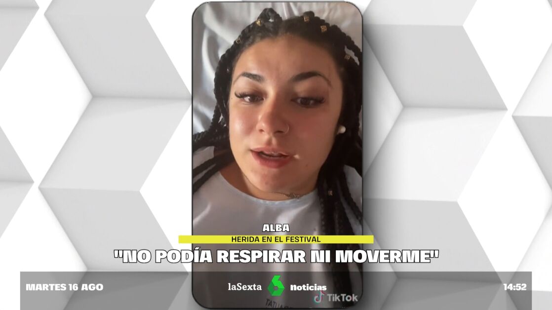 Alba, en cambio, continúa hospitalizada, con el esternón y una vértebra rotos, y relata así los momentos de angustia que vivió tras el desplome: "No podía gritar 'ayuda' ni nada, oía a mis amigas chillar mi nombre...".
