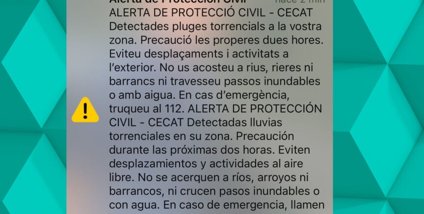 El mensaje ha llegado también a ciudadanos de los barrios de Barcelona limítrofes con algunos de esos municipios. Protección Civil recomienda a los ciudadanos que no se acerquen a ríos o rieras, que eviten desplazamientos innecesarios y que consulten el estado del tráfico si deben viajar en coche.