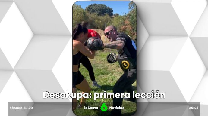 El líder de 'Desokupa' ha iniciado este sábado los cursos de formación de Policía y Mossos d'Esquadra. La primera lección ha sido de autodefensa y se han podido escuchar comentarios tan machistas como "mi hermana pega más fuerte que tú" y "aquí no hay cuota de género".