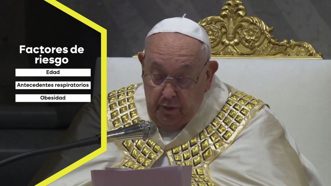 En el caso del pontífice, estamos ante una persona con varios factores de riesgo, siendo el primero -y más evidente- la edad. A sus 88 años, el papa ve que su diagnóstico se complica, especialmente a partir de 65 años, más si tenemos en cuenta que con 21 años se le tuvo que extirpar un trozo de pulmón.