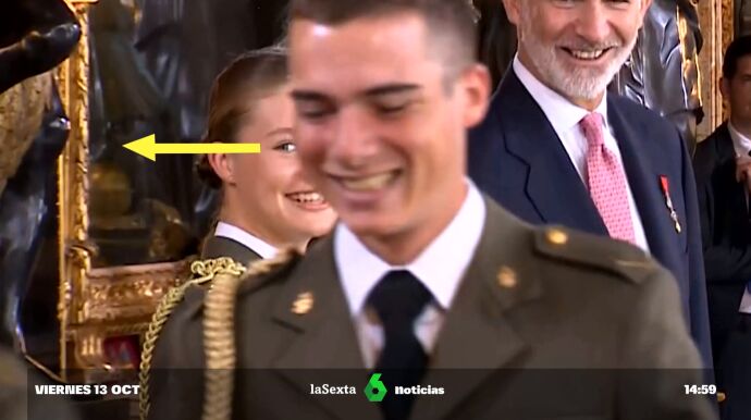El saludo entre los reyes y la princesa y dos de los compañeros de Leonor en la academia militar se ha vuelto viral, pero, ¿a cuál de los dos cadetes miran realmente? Analizamos las imágenes del momento a cámara lenta.