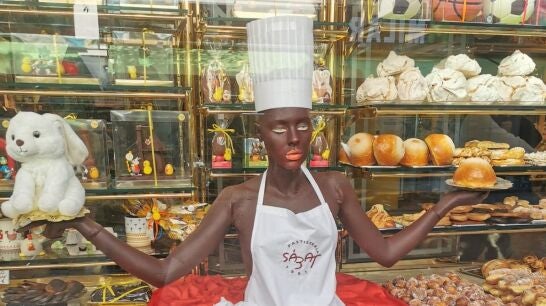 La pastelería familiar pone cada año una espectacular mona de Pascua para llamar la atención de sus clientes. Pero la de este año, además de llamar la atención de todo el que pasaba por delante del mostrador, ha sido objeto de una denuncia en redes sociales. La del colectivo feminista de Sant Cugat 'Hora Bruixa', quien aseguró que la figura evocaba "directamente al esclavismo" y contribuía "la caricaturización histórica de las personas negras" y su "estigmatización".