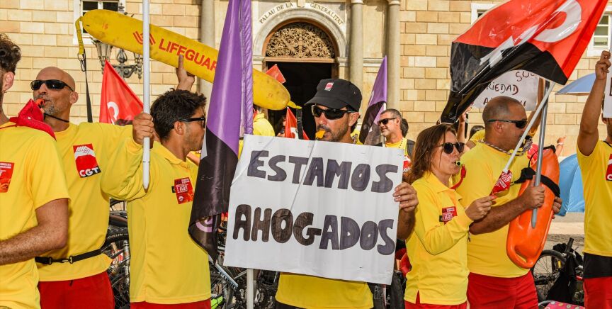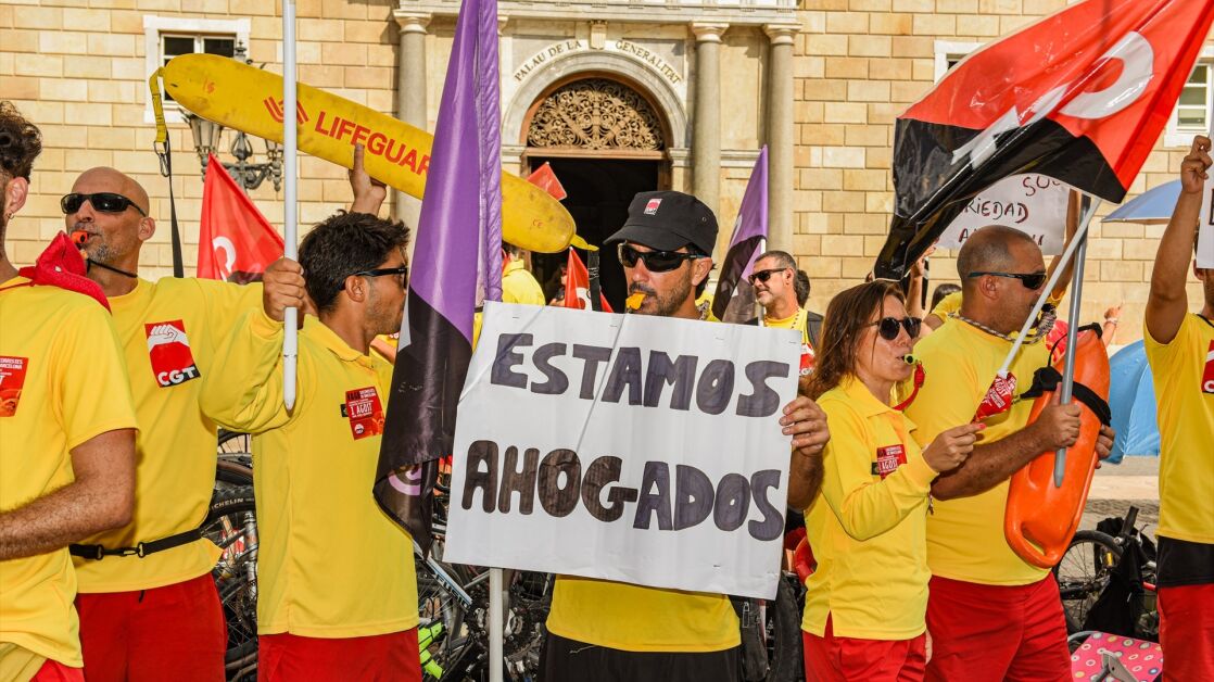 Desde este viernes, 1 de agosto de 2025, los socorristas de las playas de Barcelona están en huelga indefinida. Así se han manifestado, portando sombrillas y toallas, aunque estén ahora lejos de las playas. Protestan, frente al Ayuntamiento de la ciudad condal, y reclaman con su paro mejoras salariales y laborales. Durante la huelga, que no se sabe cuánto se prolongará, se han establecido servicios mínimos del 50%, por lo que, en pleno verano, la mitad de las torres de vigilancia permanecerán cerradas.