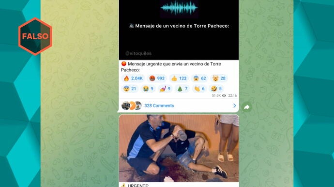 Además, las mentiras también pueden estar disfrazadas de mensajes institucionales, como un comunicado que, aseguraban, era del Ayuntamiento de Torre-Pacheco. La realidad, sin embargo, es que es inventado. Verificadores profesionales de 'Newtral' han rastreado su origen y han comprobado que se ha creado por primera vez en Telegram y en páginas webs ligadas a grupos prorrusos.