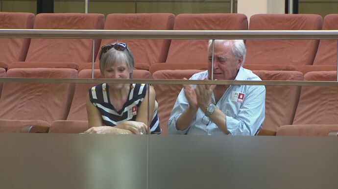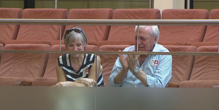 El anciano no ha podido aguantar las lágrimas cuando, acompañado de su mujer, ha escuchado desde la tribuna la reivindicación de la diputada socialista, que ha denunciado que la consejera de Familia, Juventud y Política Social de la Comunidad de Madrid, Concepción Dancausa, ha mandado una carta al anciano en la que "le advierte que puede ser expulsado de la residencia" tras haber reclamado sus derechos en El Intermedio.
