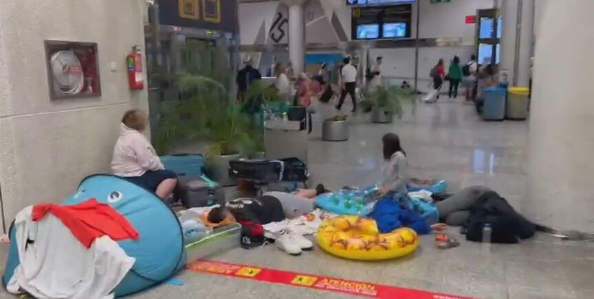 A pesar de que algunos se lo quieren tomar con humor, lo cierto es que muchos están esperando desde hace horas con sus bártulos veraniegos y sus ensaimadas haciendo equilibrio sobre la maleta esperando una solución. Algunos han optado por coger un hotel, eso sí, a pecio de oro: "Hemos pagado casi 1.000 euros por dos noches", afirma una mujer afectada por el temporal.