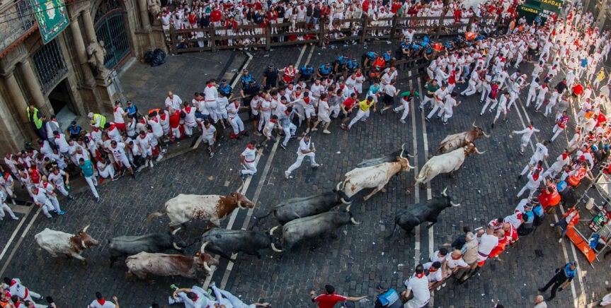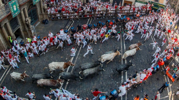Aunque el recorrido de los encierros es siempre el mismo, nunca está de más recordarlo. En total son 875 metros. El punto de partida son los corralillos de la cuesta de Santo Domingo. Sin embargo, los corredores están convocados entre las 6:30 y 7:30 en la plaza consistorial. El recorrido pasa por ahí y gira por la calle Mercaderes para acceder a Estafeta. Luego sigue hasta el tramo de Telefónica para, finalmente, pasar por el callejón de entrada a la plaza de toros.