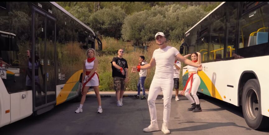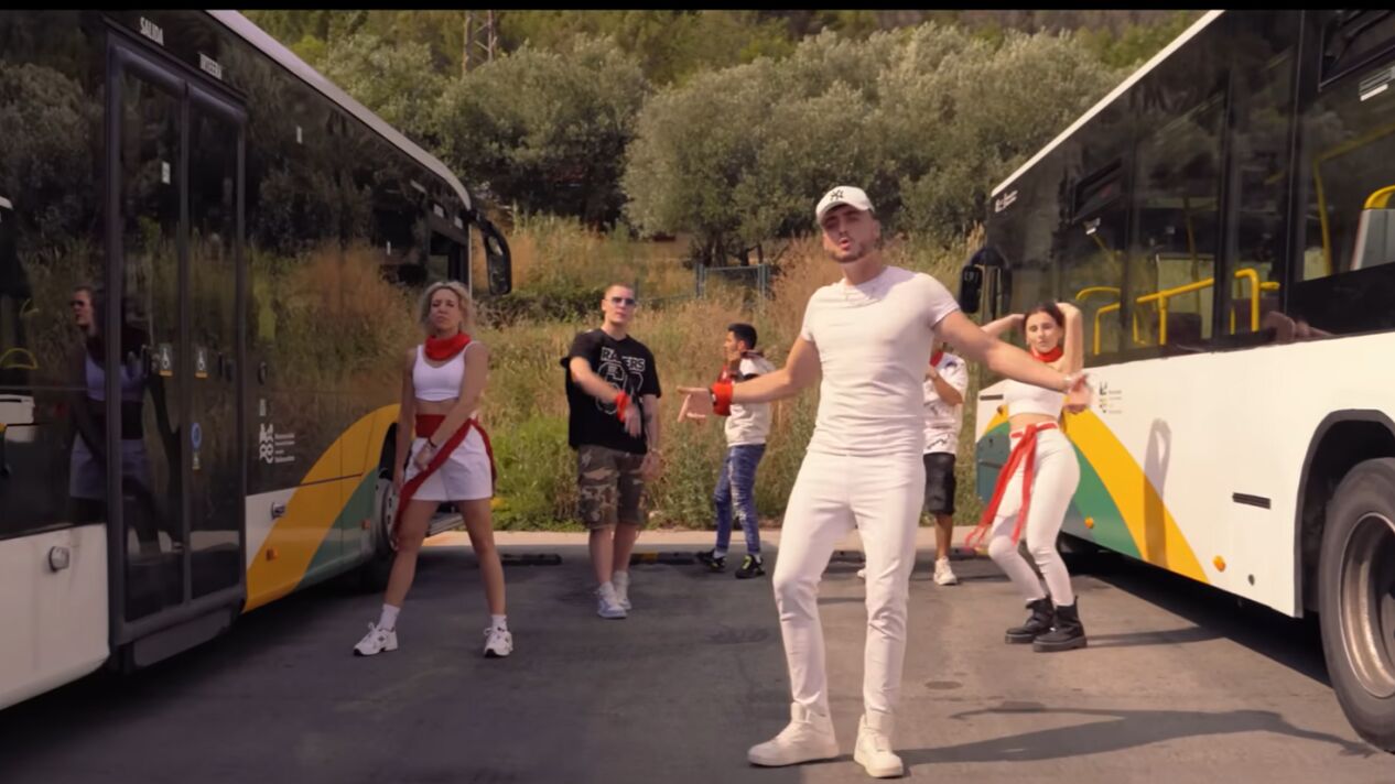 "Ella me dio un beso en la villavesa, me puso travieso; ella se puso traviesa. No era de Pamplona pero vino a la fiesta, puse reguetón así es que todo empieza". Entre autobuses de Pamplona, en los balcones de la ciudad y siempre ataviados con el tradicional color blanco de la ropa y el 'pañuelico' rojo, el videoclip no deja ni medio detalle fuera: "Me hizo sentir campeón, igual que lo hizo Osasuna", canta Martains delante de una bufanda del club rojillo, cuyo presidente es el responsable de lanzar el chupinazo este año. No sólo esto, 'patxarán', el "Ay, pobre de mí"... todo Pamplona está en esta canción.
