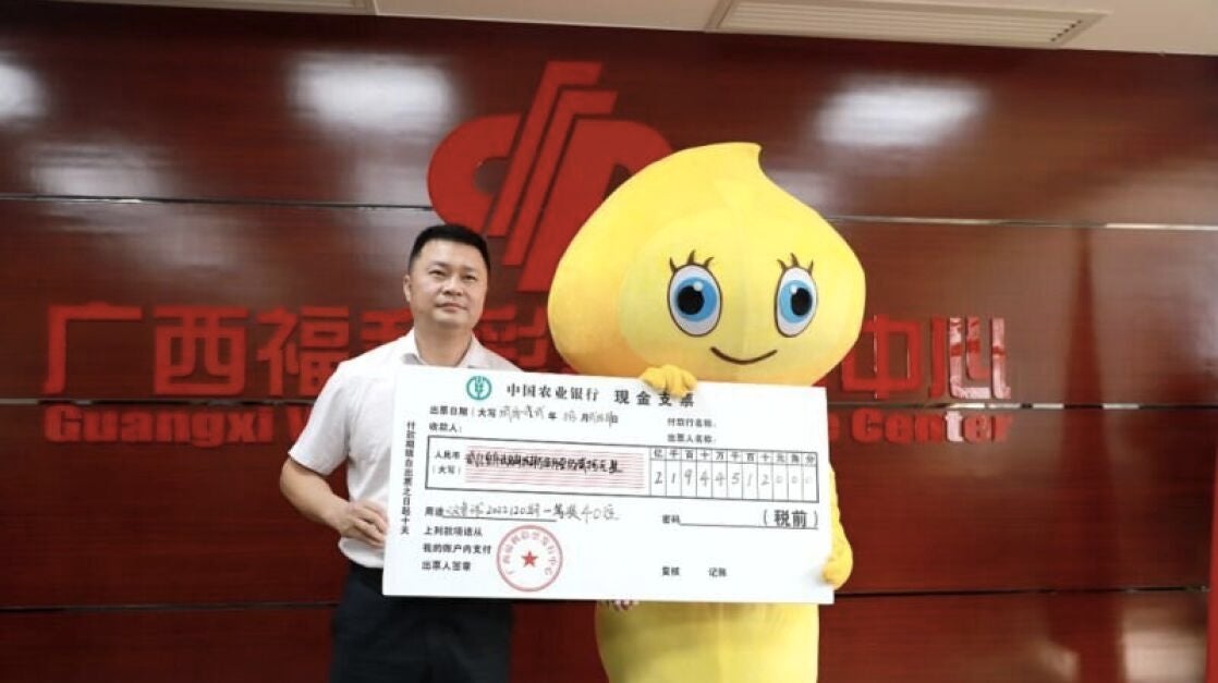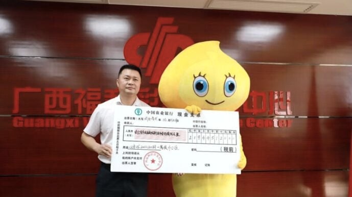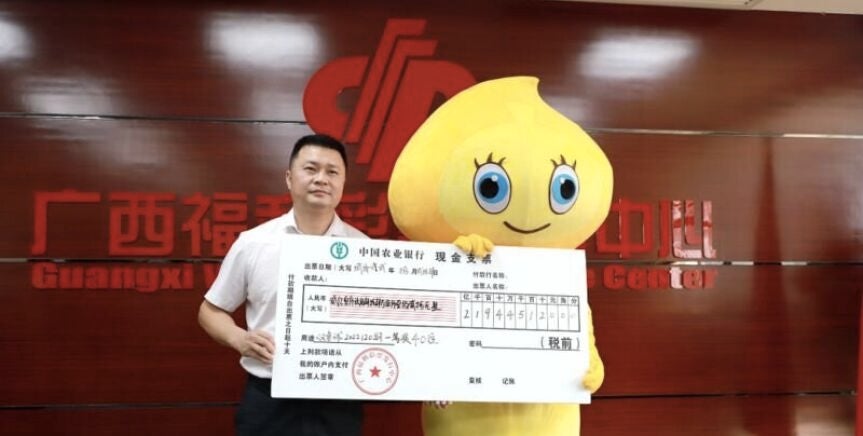 De esta forma, el pasado 24 de octubre acudió a cobrar el premio a Nanning, Guangxi, al sur de China, completamente cubierto con un traje amarillo para recibir un cheque con 219 millones de yuanes, lo que al cambio equivale a 29,9 millones de dólares.