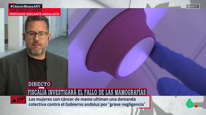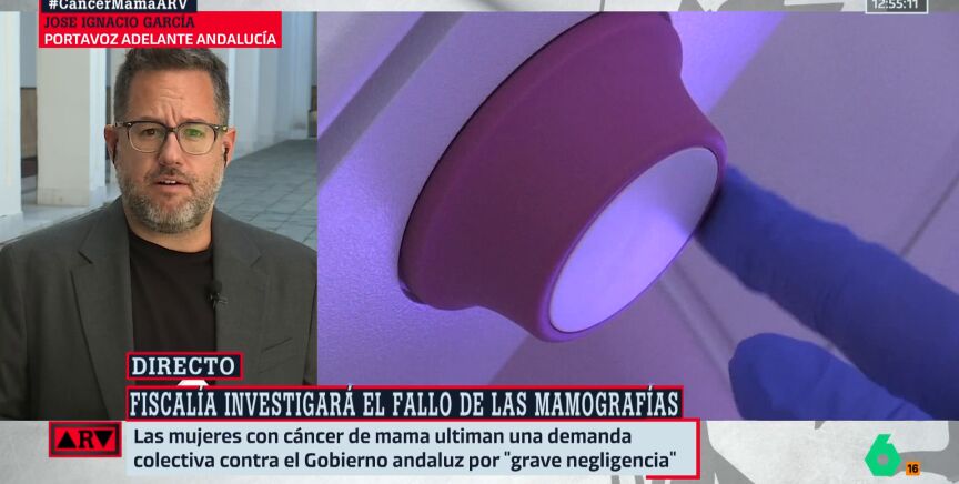 "Se han pasado todas las líneas rojas", afirma contundente José Ignacio García, portavoz de Adelante Andalucía, en una entrevista en 'Al Rojo Vivo', con motivo de los retrasos de los cribados en el cáncer de mama (mamografías) que se han producido en la región. De hecho, minutos antes de esta intervención, la asociación Amama denunciaba que ya había "varias mujeres muertas por retrasos" en las mamografías.