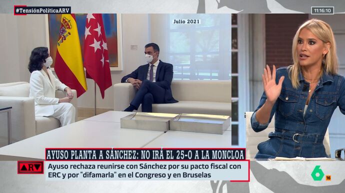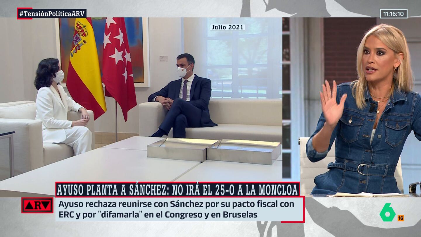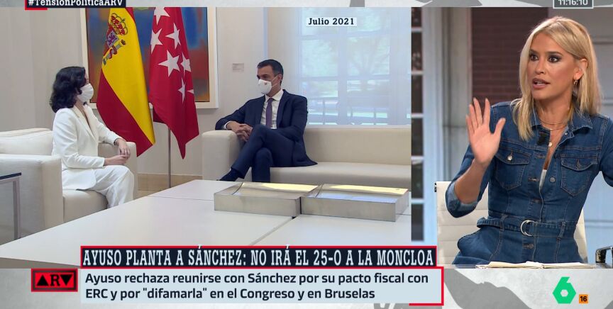 La sindicalista Afra Blanco afirma que el plantón de Ayuso a Sánchez "es un tema muy serio": "Díaz Ayuso ha dejado claro que, además de ser una irresponsable, es muy peligrosa para los intereses de los madrileños y las madrileñas". "Está lanzando un mensaje de que en Madrid no hay problemas para tener que hablar con el Gobierno de España", señala Afra Blanco, que destaca que "Ayuso está diciendo que es mentira que el 20.3% de la población está en riesgo de pobreza o exclusión social".