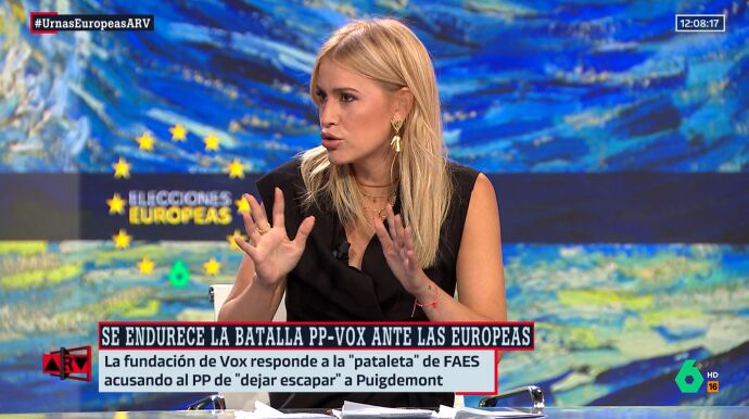 "Porque hay un PP que ha acordado y está gobernando con ellos...", afirma la sindicalista en Al Rojo Vivo, haciendo una reflexión, de cara a las elecciones europeas, sobre los partidos del ala de la derecha en España: PP y Vox.