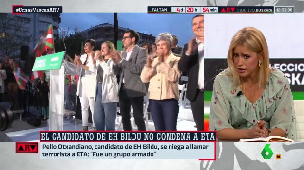 La sindicalista se ha mostrado muy crítica al no condenar Pello Otxandiano, candidato de Bildu, el terrorismo de ETA. "Reconciliación sí, pero memoria también, y ETA fue una banda terrorista que sesgó la vida de más de 800 personas".