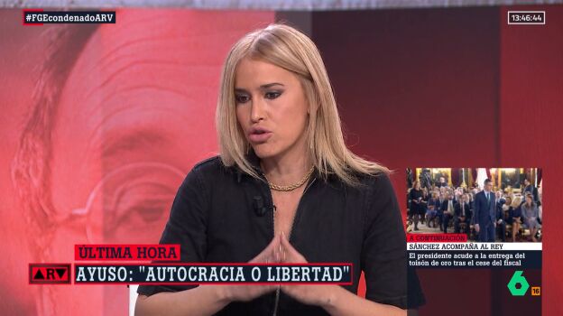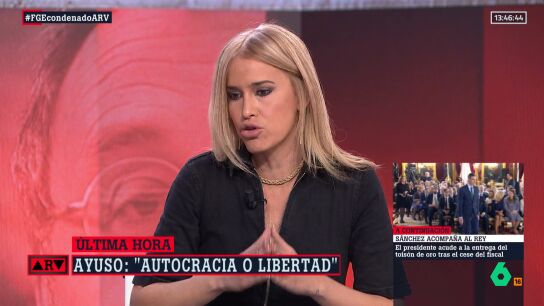 Y otra cosa, agrega y remata contundente la sindicalista: "Sí, tenemos derecho a criticar y yo al menos critico las formas del Supremo, porque ¿por qué estamos debatiendo hoy si no tenemos ni la sentencia? Porque el Supremo ha decidido sacar un fallo seis días después, causalmente un día después de que sepamos que el novio de Ayuso va a comprar el ático en el que vive y en el día en que se cumplen 50 años de la muerte del asesino y dictador de este país".
