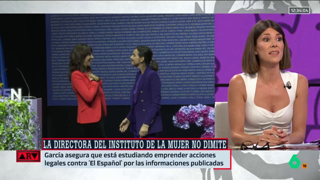 La periodista Ainhoa Martínez ha señalado este jueves en Al Rojo Vivo que "espera un cese" de Isabel García, la directora del Instituto de las Mujeres, por los contratos de los puntos violeta. García y su pareja habrían obtenido 64 contratos a dedo para gestionar puntos violeta en ayuntamientos socialistas.