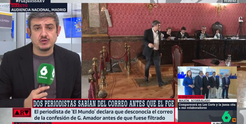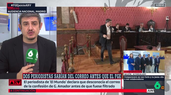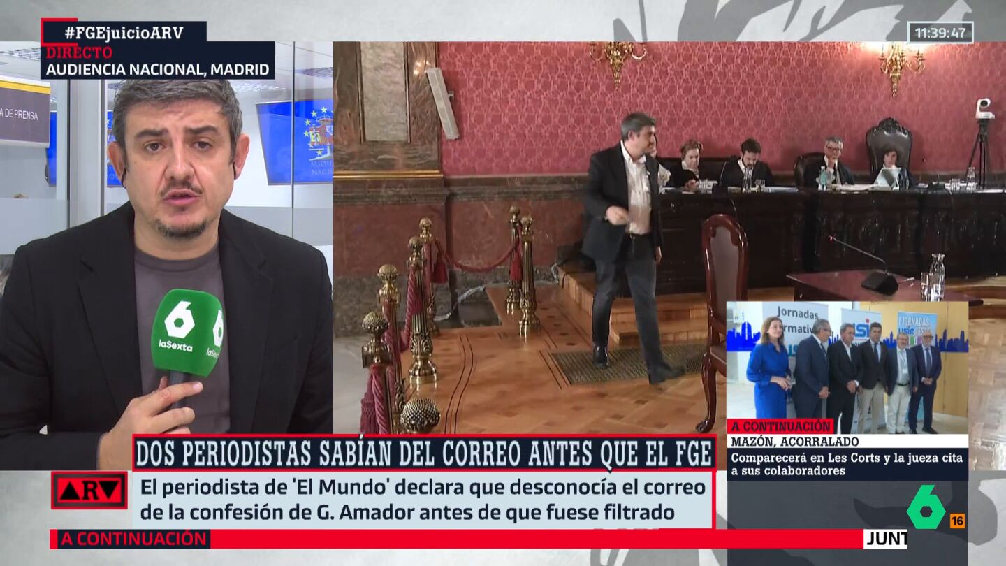 Alfonso Pérez Medina, periodista de laSexta, ha declarado ante el Tribunal Supremo como testigo en la causa abierta por la filtración del correo electrónico relacionado con el caso del novio de Isabel Díaz Ayuso. El comunicador ha explicado que comparte el "dilema moral" que también expresó el periodista de eldiario.es, José Precedo, quien afirmó: "Tengo un dilema moral bastante gordo, que tenemos muchos periodistas muchas veces: yo sé quién es la fuente de esta historia, pero no la voy a revelar por secreto profesional".