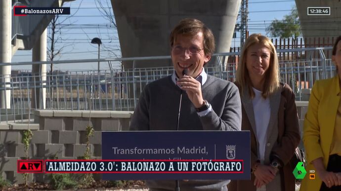 Los saques de honor no son el fuerte de José Luis Martínez-Almeida. El alcalde de Madrid lo ha vuelto a hacer: un fallo al chutar ha acabado estrellando el balón en el cuerpo de un fotógrafo que cubría el acto en el que el edil madrileño inauguraba unas instalaciones de rugby en Vallecas.