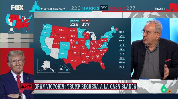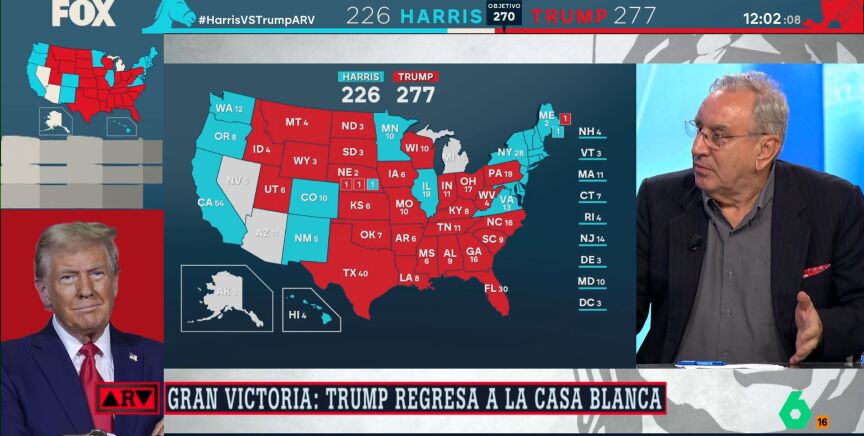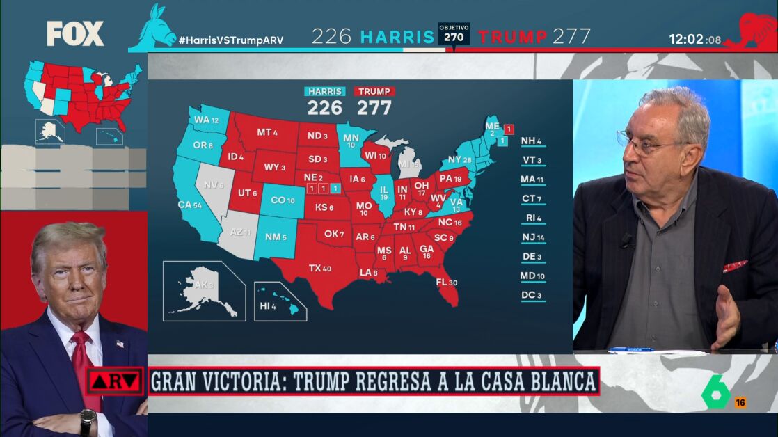 "La victoria de Trump es inapelable, mucho más grande de lo que yo imaginaba", confiesa el director del Instituto Franklin de la Universidad de Alcalá en Al Rojo Vivo. "Hay formas de perder y como ha perdido Kamala Harris..."