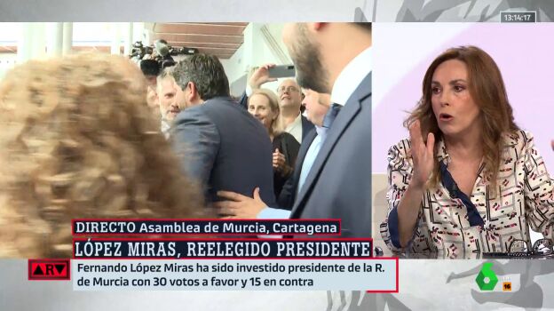 La periodista comenta en Al Rojo Vivo lo ocurrido en la comunidad de Murcia donde se ha aprobado un gobierno de coalición PP-Vox, liderado por López Miras, quién revalida de nuevo la presidencia de la región.