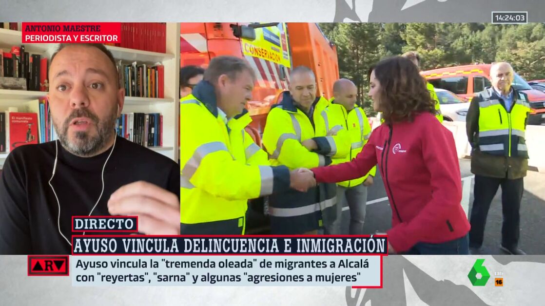 Antonio Maestre ha reaccionado a estas declaraciones asegurando que parece que al PP "le ha dejado de preocupar el discurso xenófobo de Junts, para convertirse en el líder de dicho discurso". El periodista ha señalado que el discurso de Ayuso vinculando "migración con enfermedades", recordando que es algo que hizo al vincularla "a un brote de sarna" es algo "eminentemente fascista".