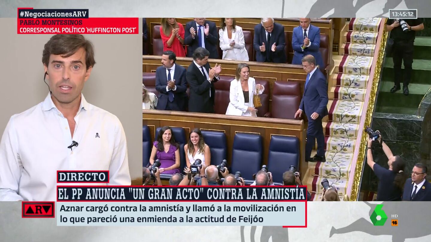 El PP está centrado en convocar un gran acto contra la amnistía antes del intento de investidura de Alberto Núñez Feijóo. Pablo Montesinos ha desvelado en laSexta que la dirección nacional del partido y los barones territoriales han reconocido que ya están "en otra etapa".