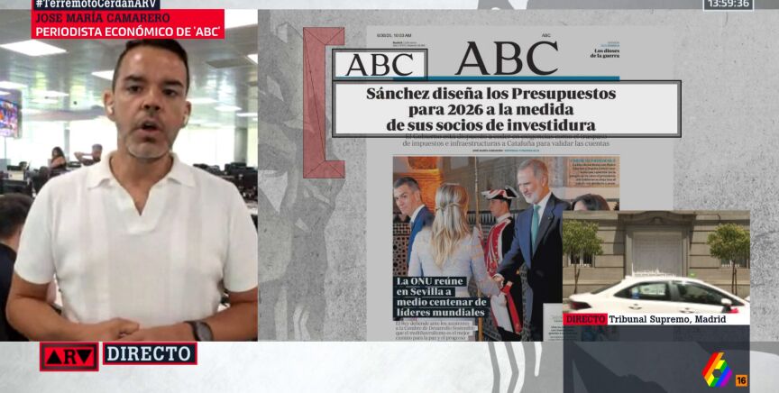 Tras conocer que el juez Leopoldo Puente, el magistrado que instruye el caso Koldo, ha decidido prisión provisionalsin fianza para el que fuera secretario de Organización del PSOE, Santos Cerdán, el periodista económico José María Camarero, entraba en Al Rojo Vivo para informar sobre una noticia relevante que publicaba esta misma mañana, en portada, en el diario ABC.