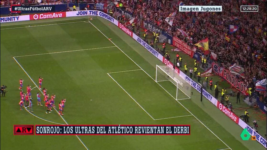 El periodista de El País, Carlos Cue reacciona a lo que sucedió en el derbi madrileño en el Metropolitano. Unos ultras rojiblancos empezaron a lanzar, en el minuto 69 del partido, objetos sobre la portería merengue en la que estaba Thibaut Courtois. El árbitro tuvo que parar el partido durante 10 minutos y algunos jugadores locales, incluido su entrenador, Cholo Simeone, tuvieron que acercarse a los ultras para pedir que pararan y que dejasen continuar el partido.