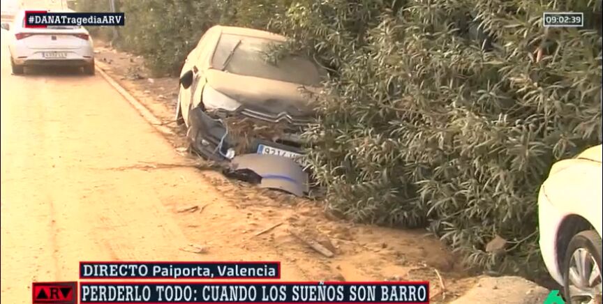 Ana Cuesta explica que la carretera está cubierta de tierra, haciendo que constantemente se levante polvo. "Es una Valencia que me cuesta reconocer", ha confesado. La periodista explica que en la capital existe una "extraña normalidad" donde la gente comienza a ir a los colegios y a trabajar, pero también ves a muchas personas con "palas y cubos" que van caminando para llegar a las zonas afectadas a ayudar.