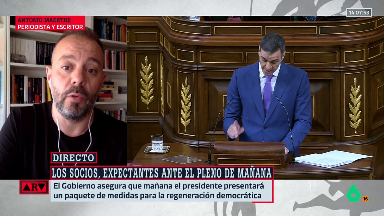 "No creo que vaya a cambiar de forma sustancial lo que ya sabemos. Habrá medidas en materia de regeneración, pero no creo que cambien los problemas en los que está el Gobierno, porque no creo que haya ninguna medida que, por su carácter técnico, vaya a cambiar el peso del debate en la opinión pública", afirma el periodista y escritor Antonio Maestre.